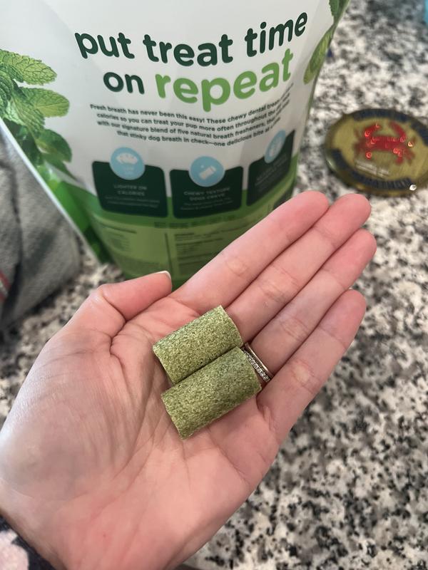 At only 7.5 calories per chew, these dental treats pack in all the fresh breath power without the extra calories. (That means even more treats for your pup!) *Data on file.