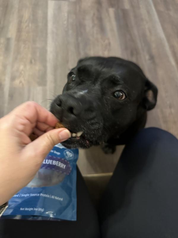 Our doggo absolutely LOVES these chicken and blueberry freeze dried treats! I wish I could include a video of her little happy dance when she hears me rustle the