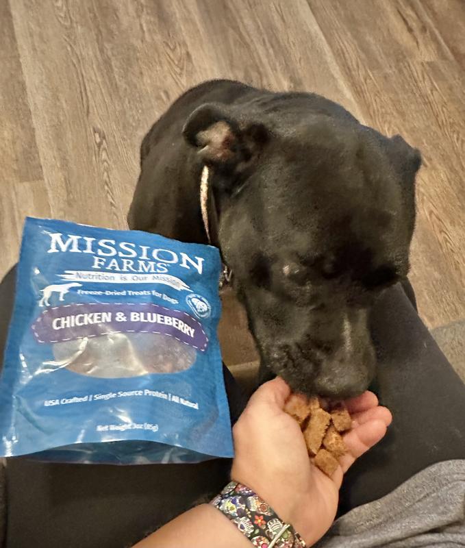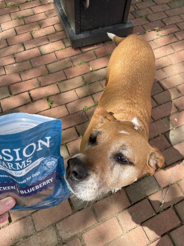 I am always on the lookout for natural treats that are both healthy and appealing to my dogs, and Mission Farms Chicken and Blueberry Freeze Dried Dog Treats have