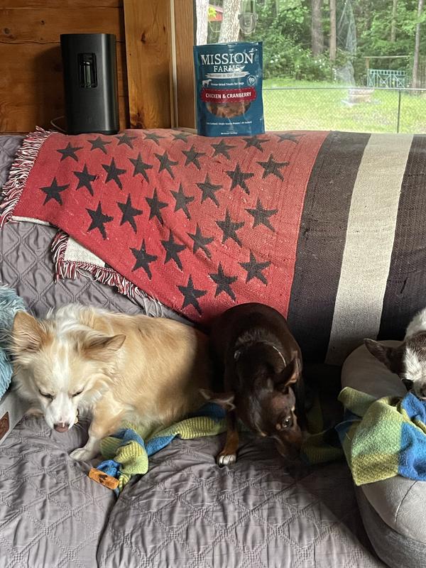 The evening before bedtime I opened Mission Farms. My 6 four legged kids went nuts over this crunchy snack. One would have crawled in bag if it could. They enjoyed the chicken cranberry with enthusiasm. Expectant looks for more followed an empty bag.