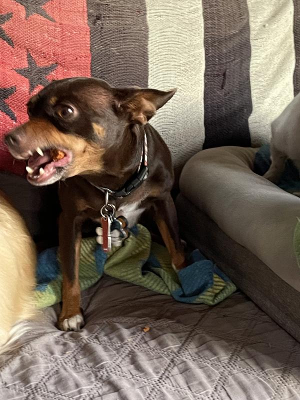 This treat is the perfect size for my little dog that weighs 14lbs. Max loves treats like most pets and this one was no exception. He is a Norwich Terrier. He is the only pet in his household. Max would recommend this treat to his dog friends. Max is located in South Texas region.