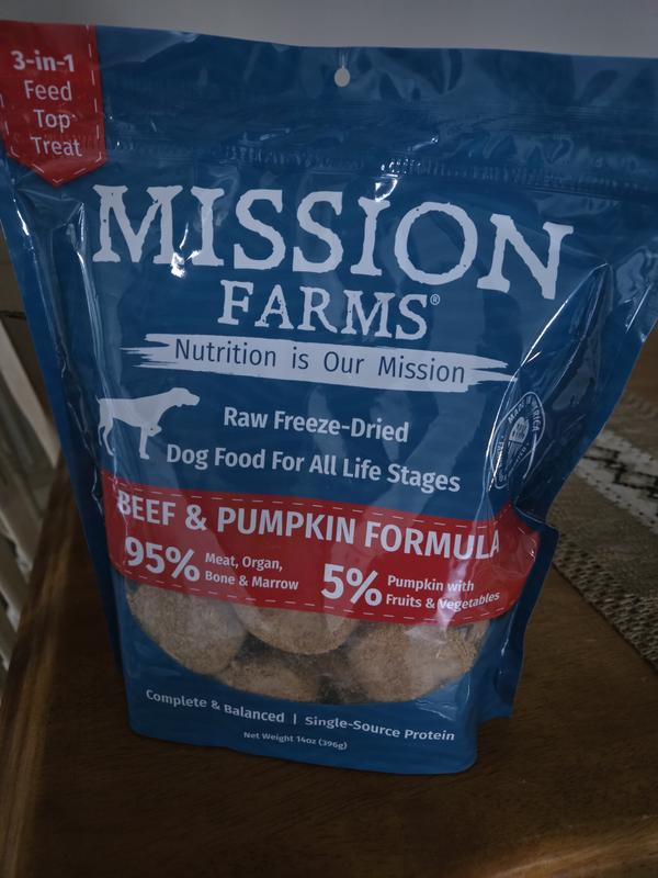 Mission Farms Grass-Fed Beef & Pumpkin Adult Freeze-Dried Dog Food, 14-oz bag
