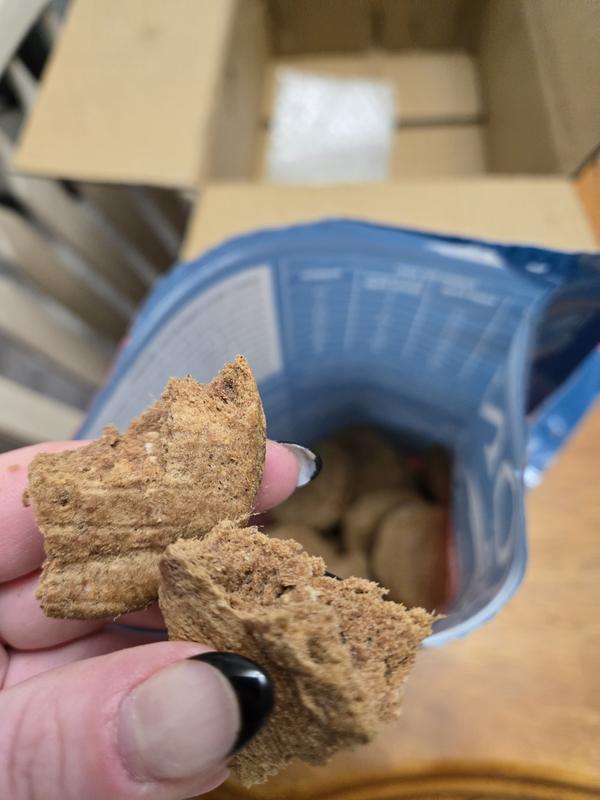 Ok I got these to try on my 6 little dogs ranging from 4 to 12 pounds. I didn’t realize these treats are big and really, really hard. They have little mouths and little teeth but I’m sure they would have loved them. I will be giving the bag to my son for his dog. I’d still love to reveiw but it’s gonna have to be small treats that are easy to break. Sorry I can’t give you a review on this product but will want to review different ones that are right for my fur kids. Thank you.