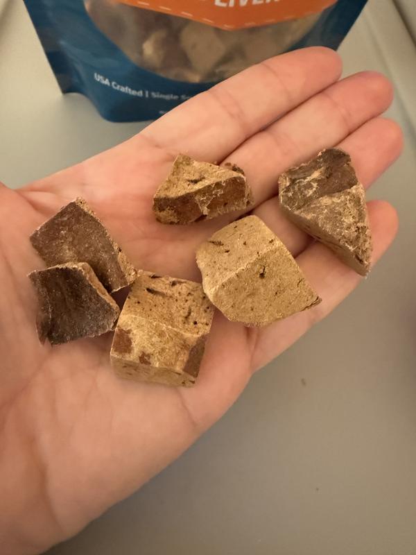 These freeze-dried liver treats are a little different texture from my usual training treats, but after a couple of tastes, my dogs liked them fine. Most of the