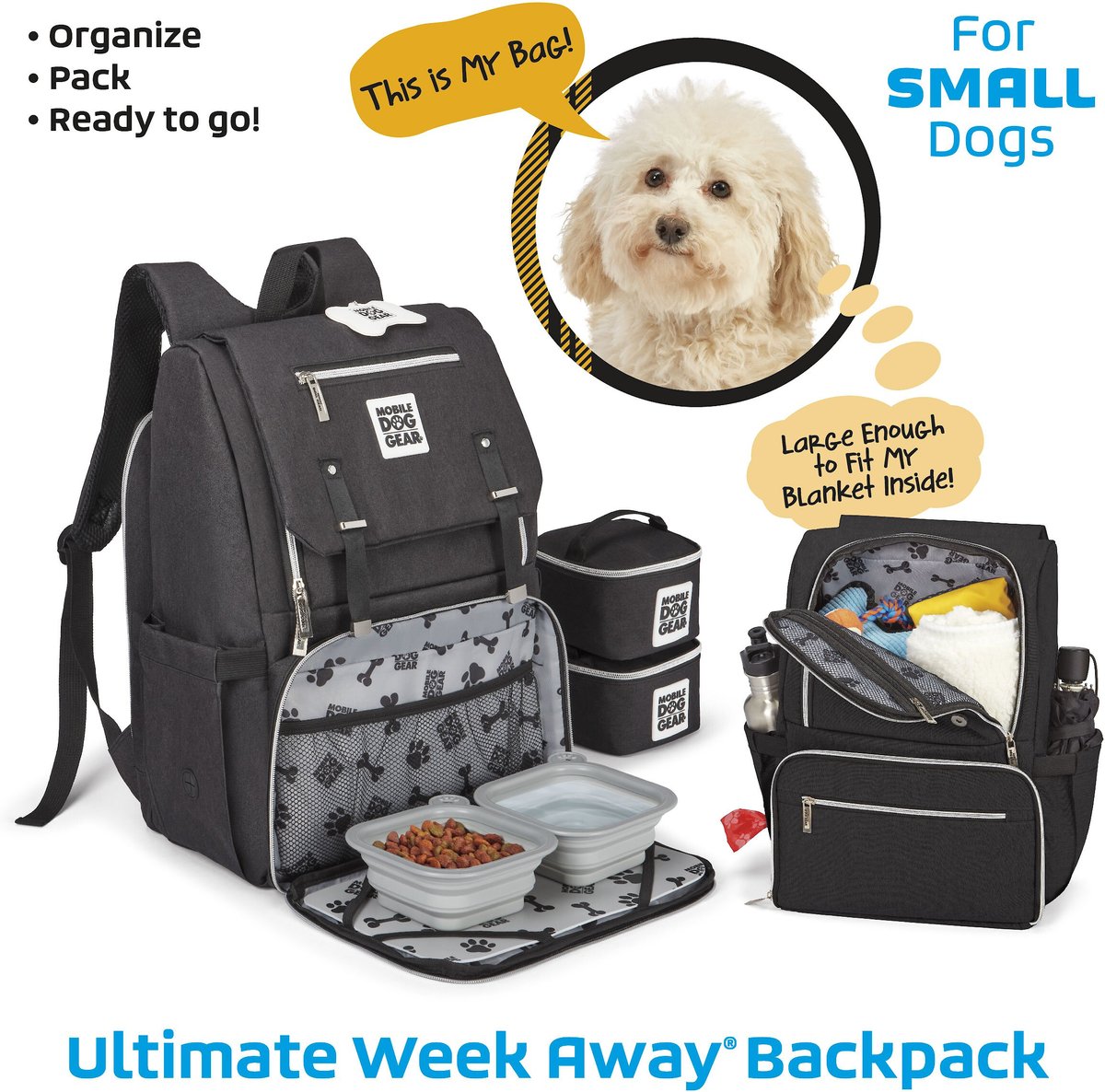 Mobile Dog Gear Ultimate Week Away Backpack, Small, Black