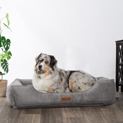 MODERN THREADS Luxury Tufted Velvet Cuddler Dog & Cat Bed with Removable Cover, Charcoal, 34 x 25 x 9-in
