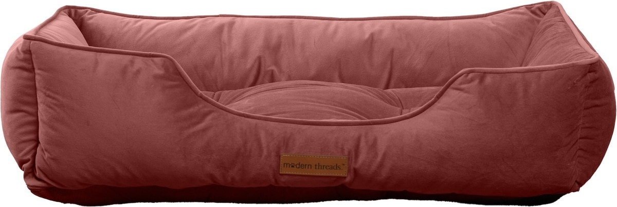 MODERN THREADS Luxury Tufted Velvet Cuddler Dog & Cat Bed with Removable Cover, Rosewood, 34 x 25 x 9-in
