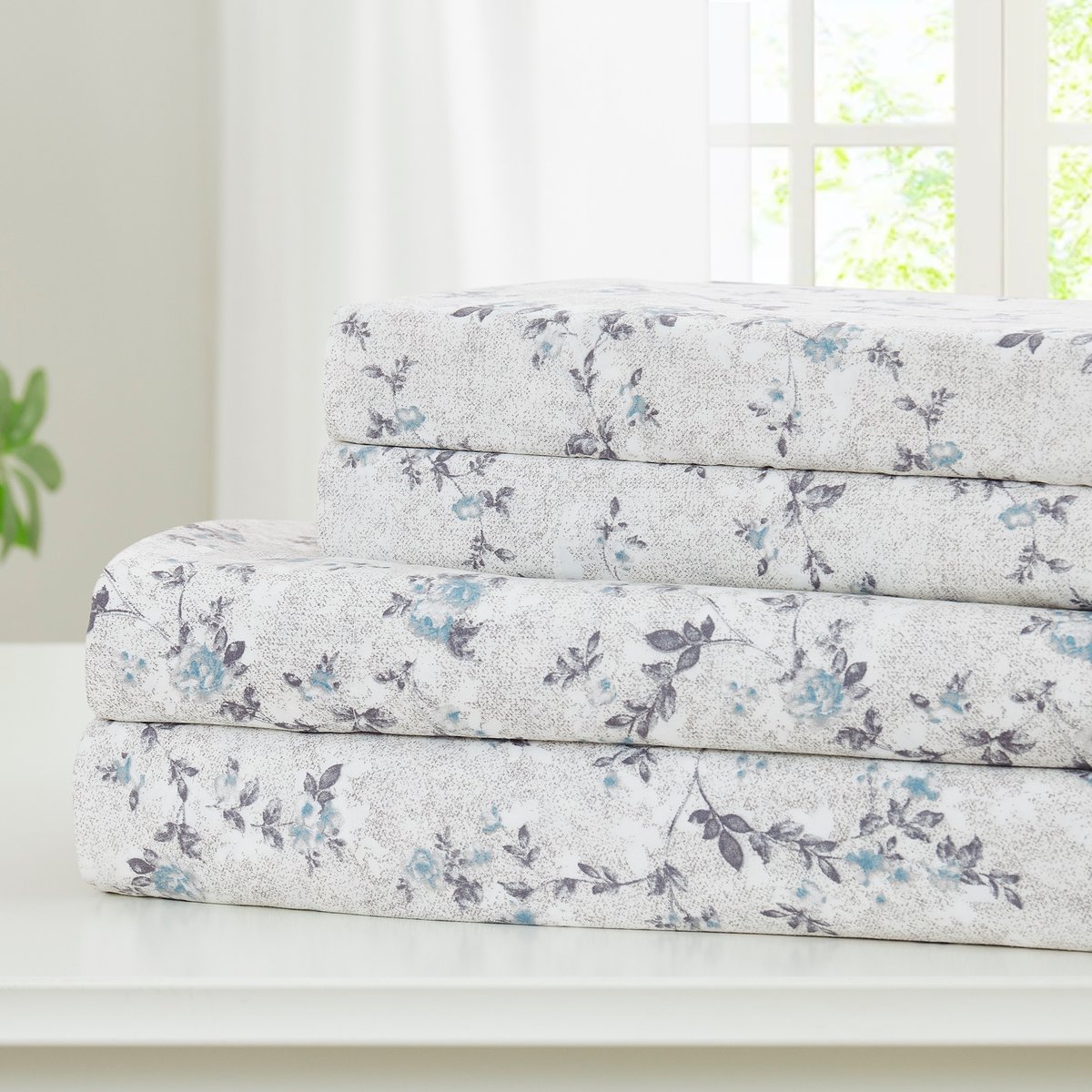 MODERN THREADS Soft Microfiber Solid Bed Sheet Set, Floral Blue, Twin