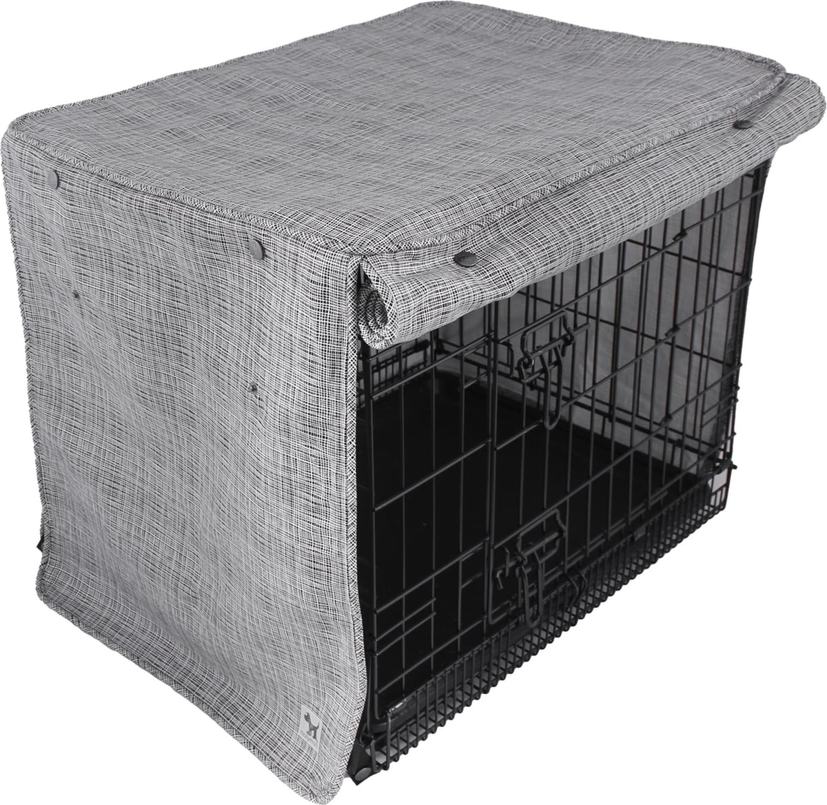 • Stylish cover easily fits over your dog’s metal crate.
