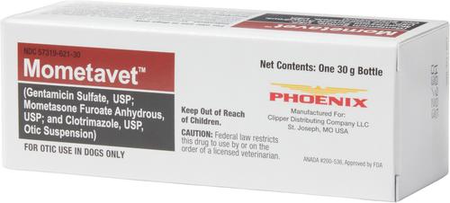 Mometavet is a triple combination steroid, antibacterial, and antifungal treatment that combats canine ear infections. Mometavet has been proven effective in reducing discomfort, redness, swelling, exudate, and odor, as well as the treatment of otitis externa.