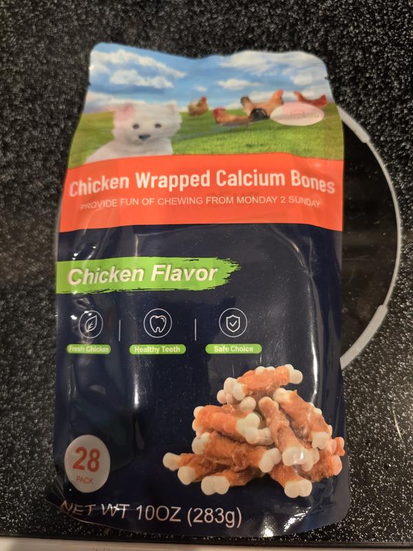 MON2SUN Chicken Wrapped Calcium Bones 2.3-inch Rawhide-Free Dog Treats, 56 count