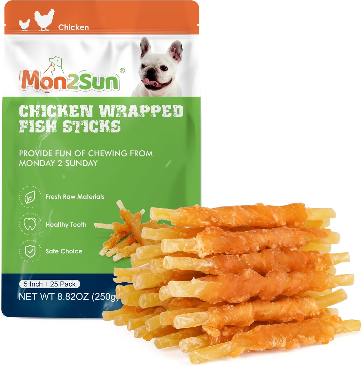 MON2SUN Chicken Wrapped Cod Sticks Rawhide-Free Dog Treats, 25 count