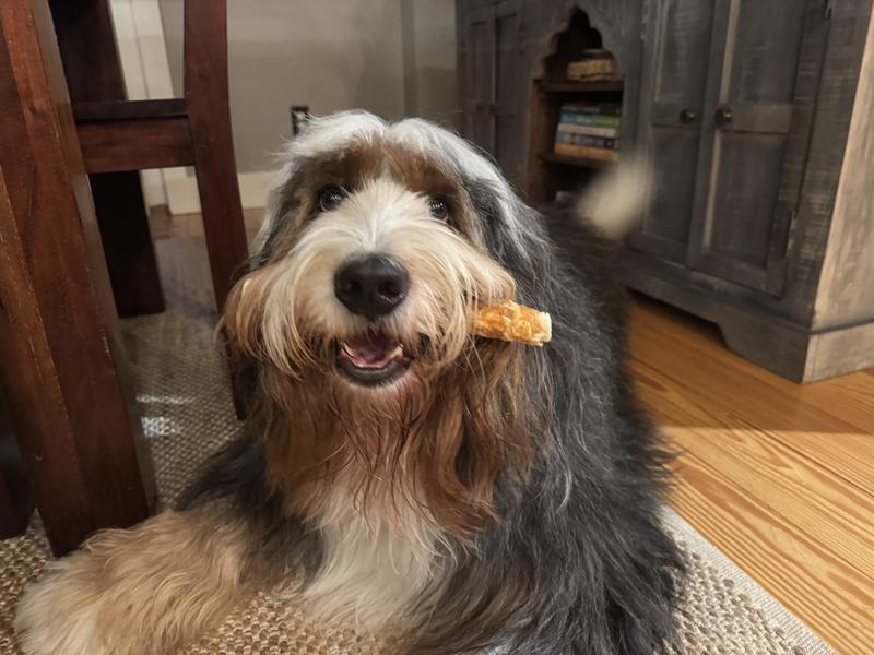 My dog could smell that there was something special on the counter before I even opened the Chewy box. And I think it's fair to say it lived up to his expectations--he loved it. It kept him occupied for a good hour or so, which is pretty good for him. He's an 82 lb Bernedoodle (heavy on the Bernese) and an aggressive chewer. I also loved that so many came in the bag. I feel like we have a good treat/distraction to rely on for a while.