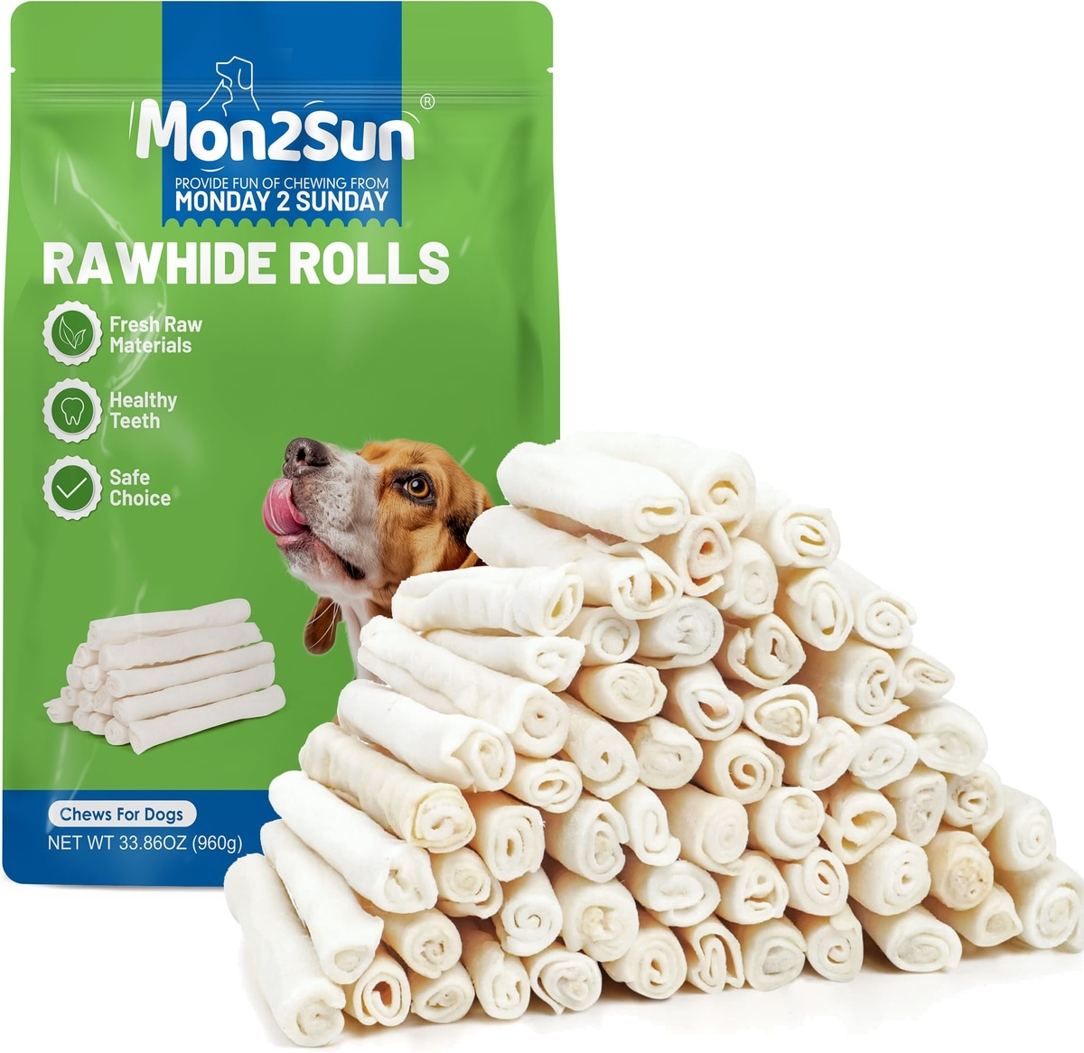 MON2SUN Rawhide Rolls Natural Flavor Dog Chew Treats, 60 count