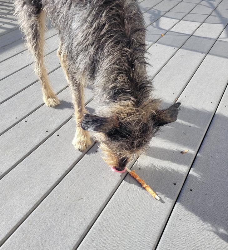 My pup gets so excited when she sees me go for the bag of Rawhide Twists. They are a familiar rawhide at their core, and have a tasty (I assume) and exciting overlay
