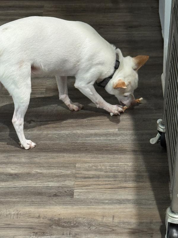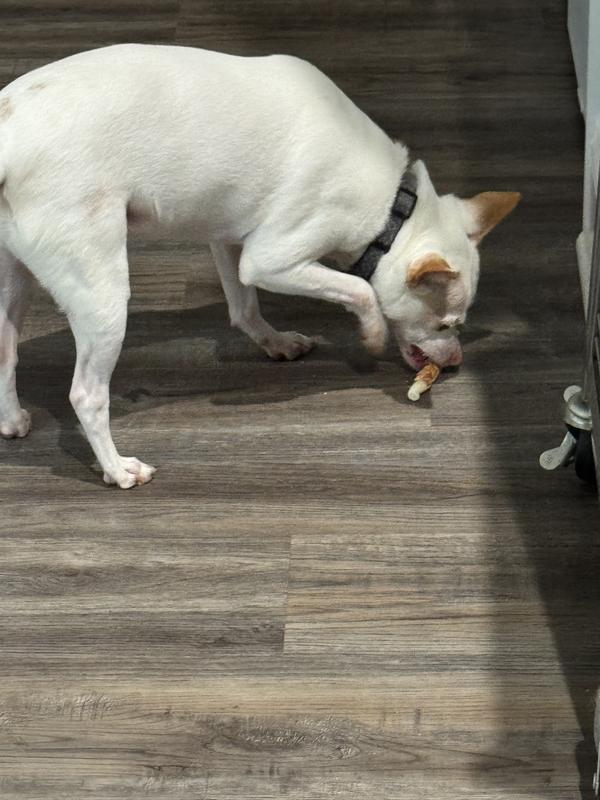Our boxer has allergies, aches, sore teeth, and all the things that go along with being an older dog. That didn't stop her from tearing into these!! AND bonus, she isn't allergic :) she usually breaks in welts whenever we try a new product, with these, nothing!!! She can have treats again!