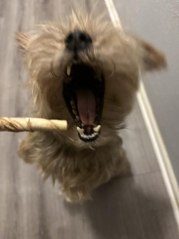 Unfortunately, my yorkie does not like these and she’s not a picky snacker. She will chew for a bit, but then stop. I’m not sure if it’s the added Artificial chicken flavoring or the texture (it’s no different than other rawhide sticks) but she has yet to finish one stick. I’ll see if my friends dog would like them.