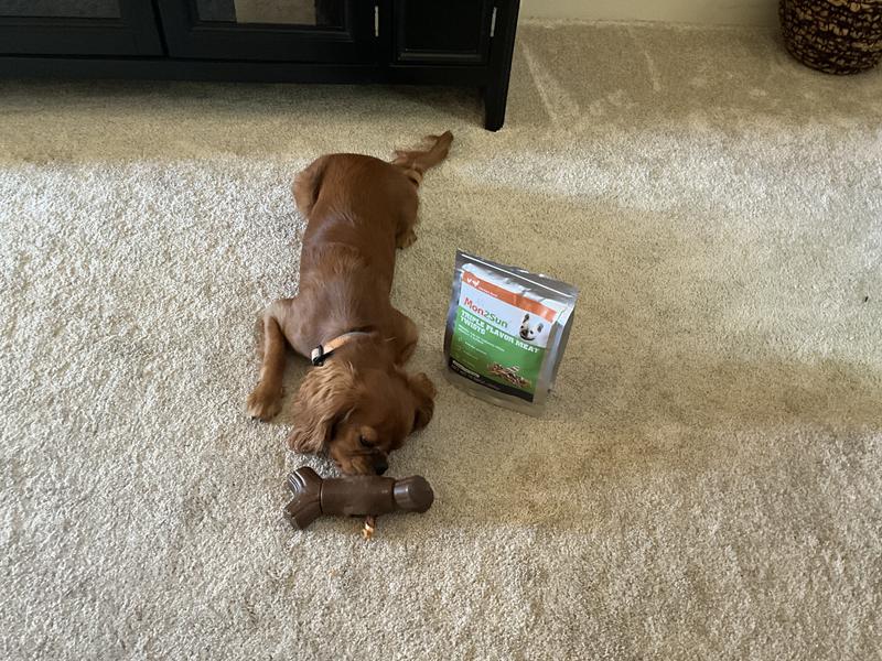 Good amount of treats with a good flavor! Unfortunately our girl tends to eat these a bit too fast lol we tried to get a picture of her eating it but it was already gone! But I’m sure with a smaller, less wild dog, they’d be a nice longer lasting snack!