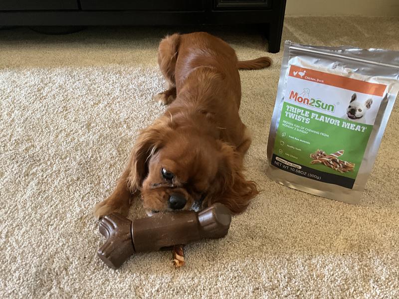 The Mon2sunTriple Flavor Jerky Twist Sticks are appealing, smell good and my dog loved them. That said the reason for a 4 is the packaging said don't swallow big chunks and made in china. I try not to buy things from there. Of course what's the first thing my pup does is take a bite and swallow it no chewing. LOL that's a dog for you. All and all my pup does like them. I like them because they are not rawhide. However I will not purchase again because they are not made in the USA.