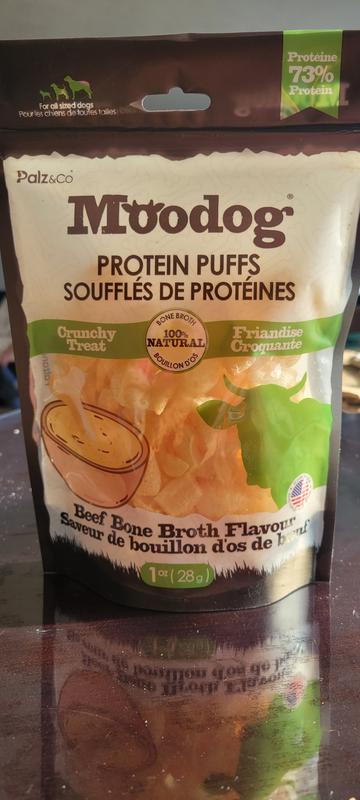 Palz&Co Moodog Beef Protein Puffs Bone Broth Flavor Crunchy Dog Treats, 1-oz bag