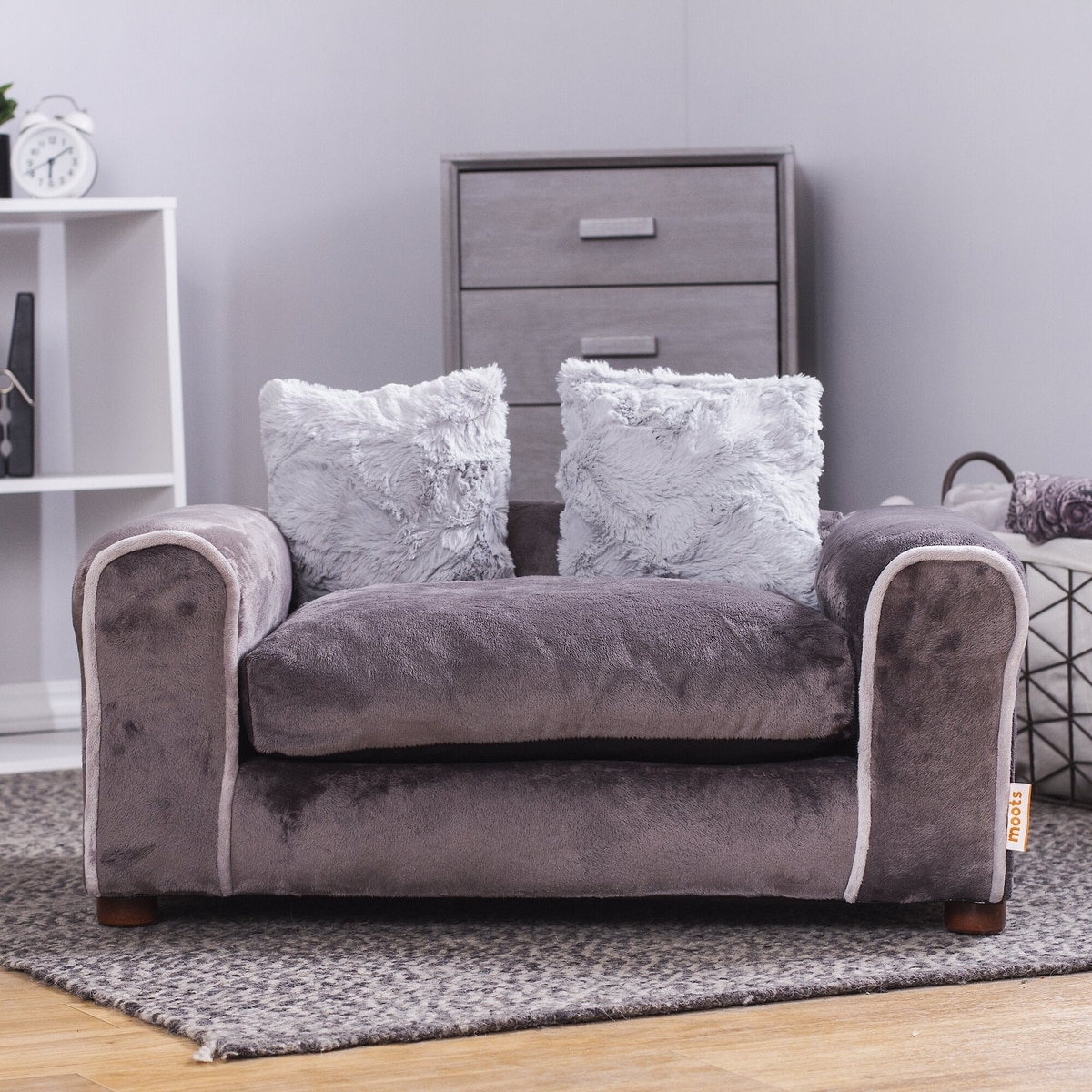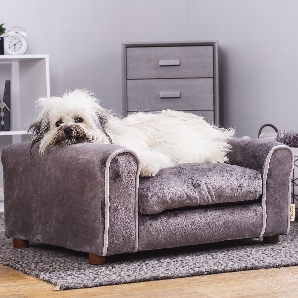 Moots Furry Sofa Lounge Orthopedic Elevated Cat & Dog Bed with Removable Cover, Charcoal, Medium