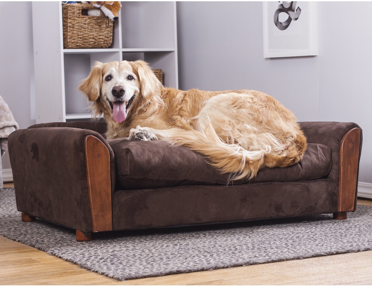 Moots VIP Microsuede Oak Couch Orthopedic Elevated Cat & Dog Bed with Removable Cover, Brown, Large