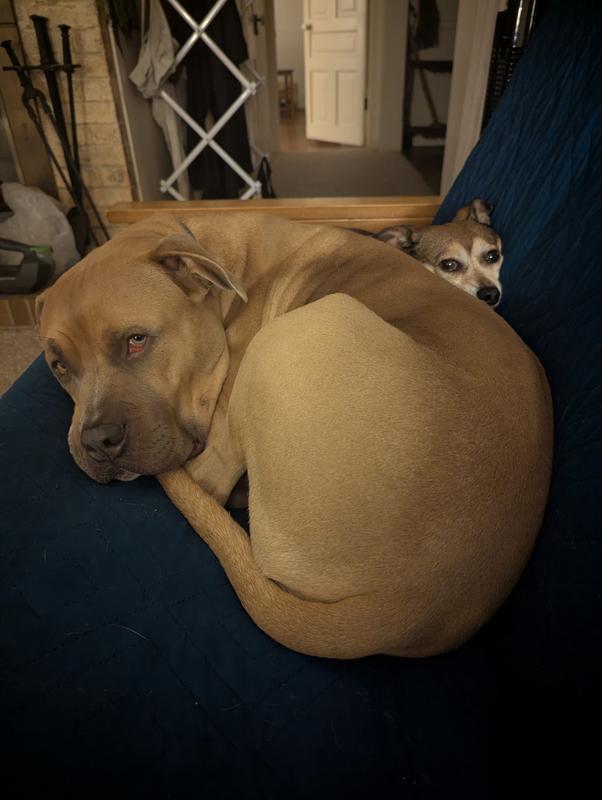 I knew as soon as I saw a photo of a hound and a pit bull this was for us. We have tried literally everything but my boy just has his own natural musk. This stuff erases it AND he actually lets me spray it on him without running from me, which is wild. Usually trying to spray deodorizing spray on him insults his manhood.