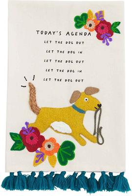 Mud Pie Funny Embroidered Today's Agenda Dog Tea Towel, Cream