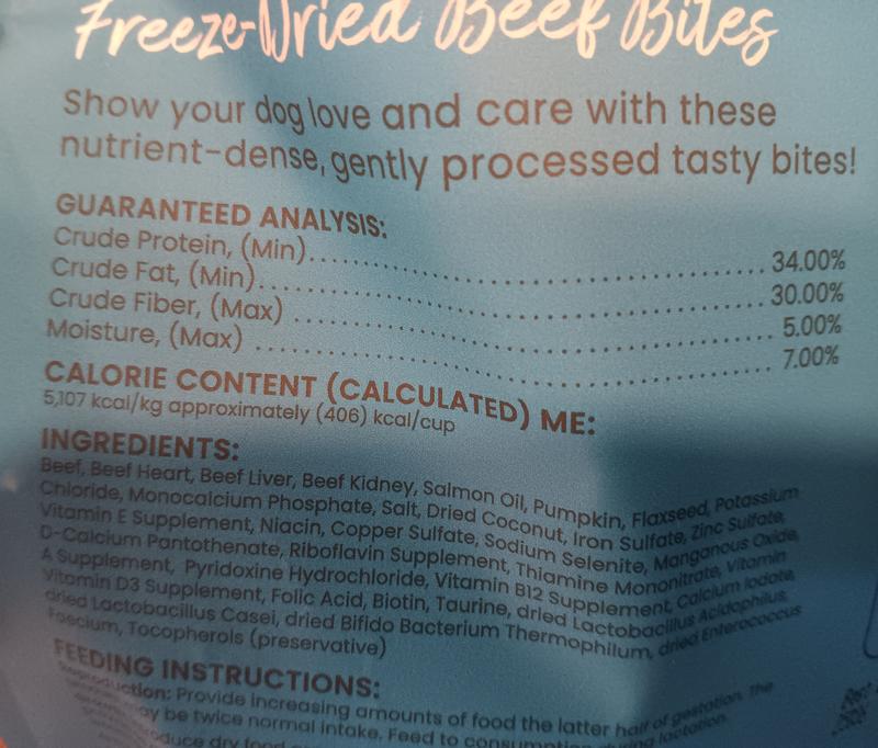 Pippa, my Lab, loves to eat and is on a weight management diet. I am using the Muenster Freeze Dried Beef Bites as a treat/reward for her since they are so nutrient