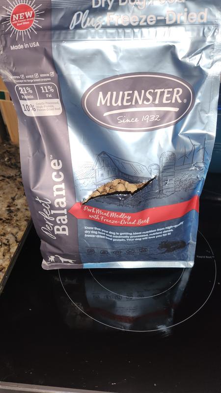 Muenster Perfect Balance Pork Meal Medley with Beef Bites Freeze-Dried Dog Food, 3.5-lb bag