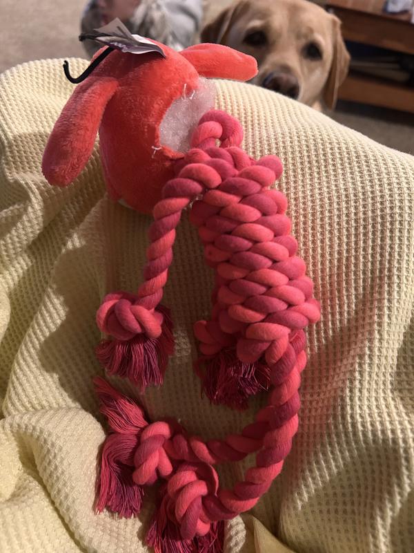 Multipet Loofa with Rope Body Squeaky Ropes Tug Dog Toy, Color Varies, 10.5-in, 1 count