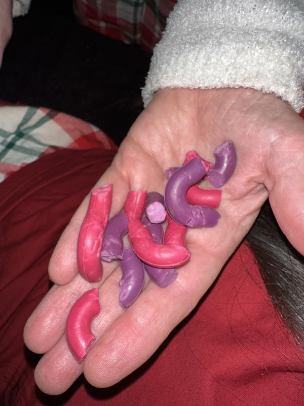 This toy is made of interwoven rubber tubes and is hollow in the middle.