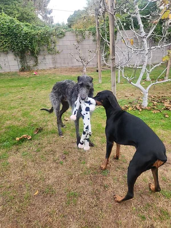 Both my Deerhound and Doberman absolutely love this toy. Its a favorite to run back and forth with for both. My Deerhound has an especially high prey drive and