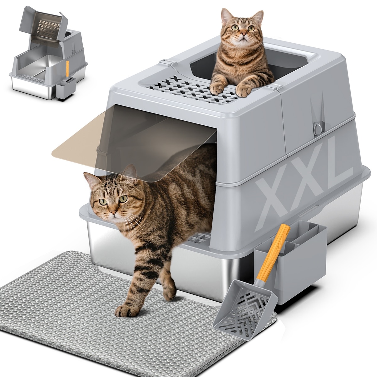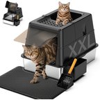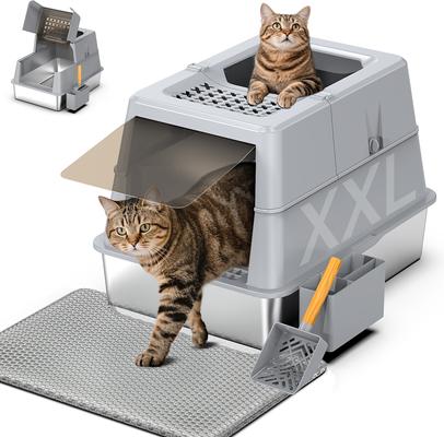 Mutrelenx Modular Design Covered High Sided Stainless Steel Cat Litter Box with Flip Lid, XX-Large: 27.5 x 19.7 x 19.3-in, Grey