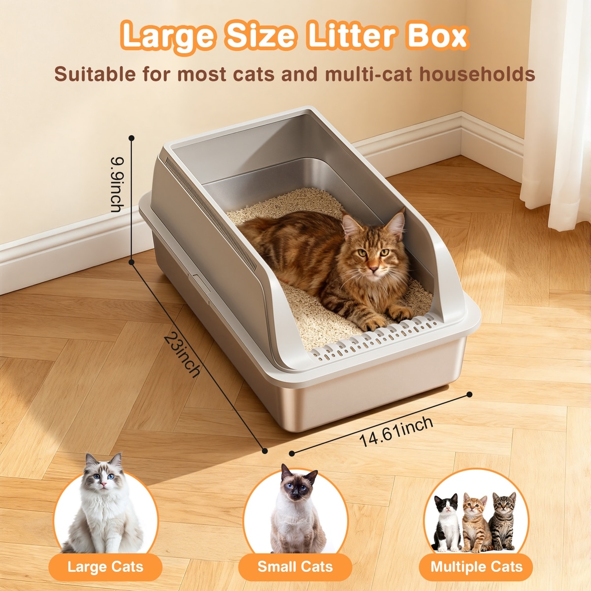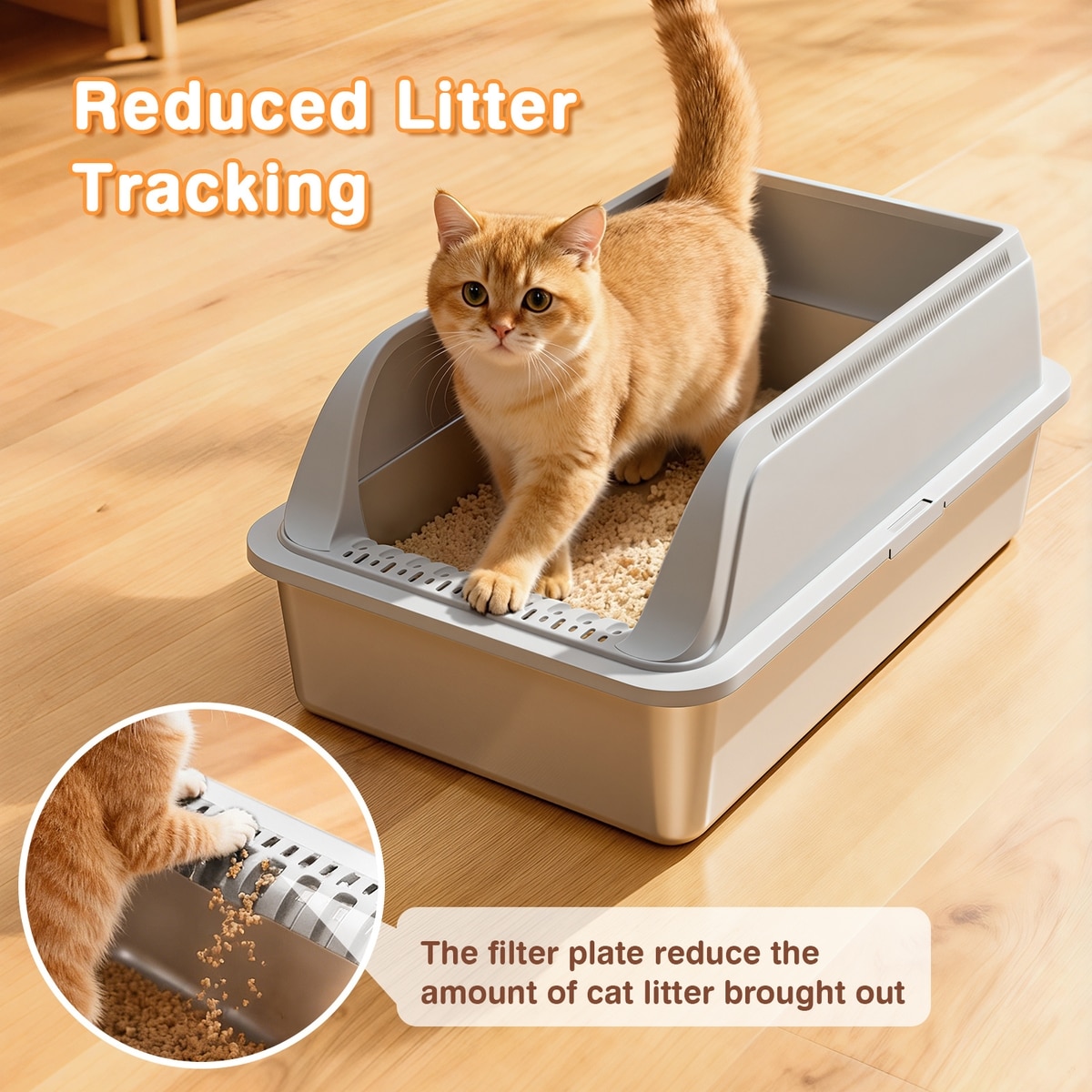 Generous capacity reduces the frequency of litter refills and changes, and the included scooper makes daily cleaning quick and hassle-free.