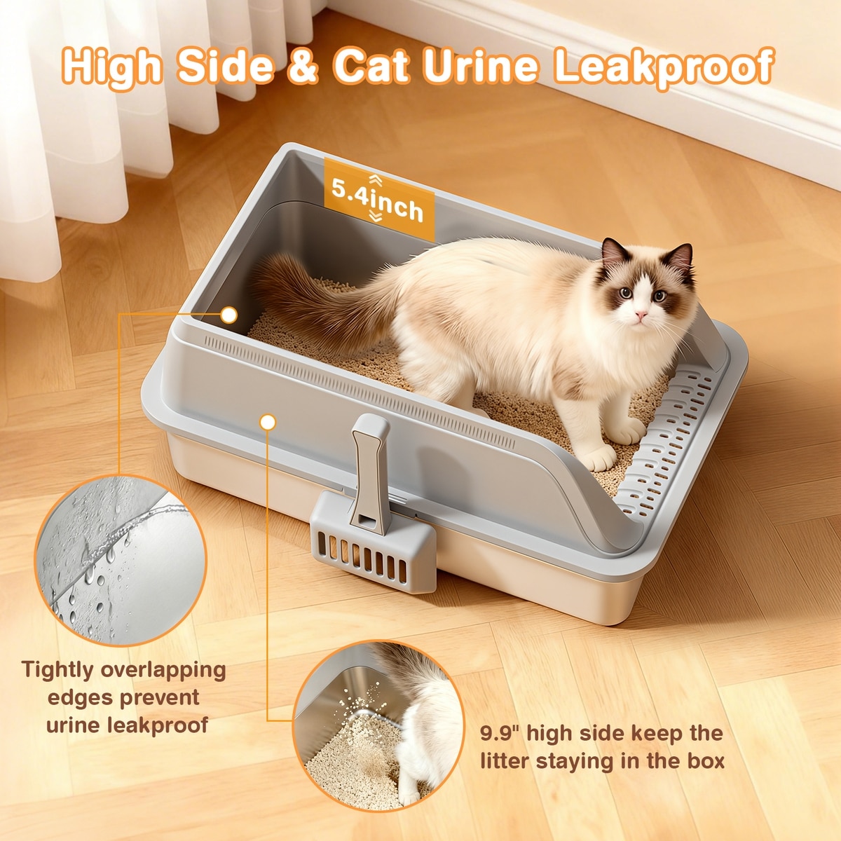 Overlapping design prevents urine leaks and litter splashing, providing a mess-free solution.