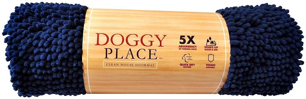 The My Doggy Place Microfiber Dog Doormat comes ina navy blue color.