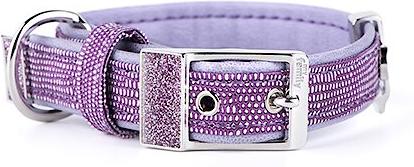 myfamily Saint Tropez Premium Italian Leatherette Glitter Dog Collar, Lilac, 12-in