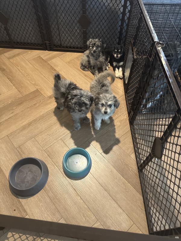The 9.5 x 8 swinging door is the only way in and out of this Petyard. It allows your pet the freedom to come and go as they please. The small door also locks for containment offering you peace of mind. If you want to reduce the size of your Petyard-simply remove panels for multiple configurations for all stages and phases of your pet’s life. Remove two panels to make a hexagon shaped pen for your pet to play with ease. Remove two additional panels to create a cozy crate for puppy training.
