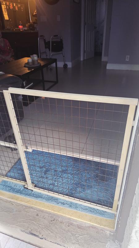 We do not recommend using the Extra-Wide Wire Mesh Gate outdoors. Exposure to the elements such as sun, wind, rain, etc. can cause damage to the gate.