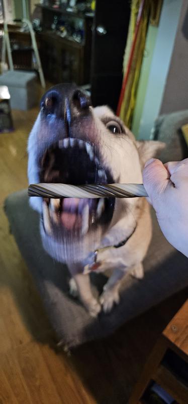 N-Bone Flossta is available in a variety of flavors that dogs can’t say no to: Chicken, Beef Liver, and Mint, all made with no wheat, corn, or soy added. It may be hard for your dog to pick a favorite, so try all three and see which one he likes best! You can also enjoy your dog’s puppy kisses a bit more, thanks to the natural breath fresheners parsley, fennel, and mint.