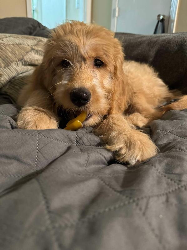 Each N-Bone Puppy Teething Ring is twisted into its unique shape by hand. The hand-shaped ring gives your puppy special grooves to chew on, helps keep teeth clean from plaque and tartar, and soothes sensitive gums. The pliable texture is not too harsh on young teeth and easy for little puppy paws to grip.