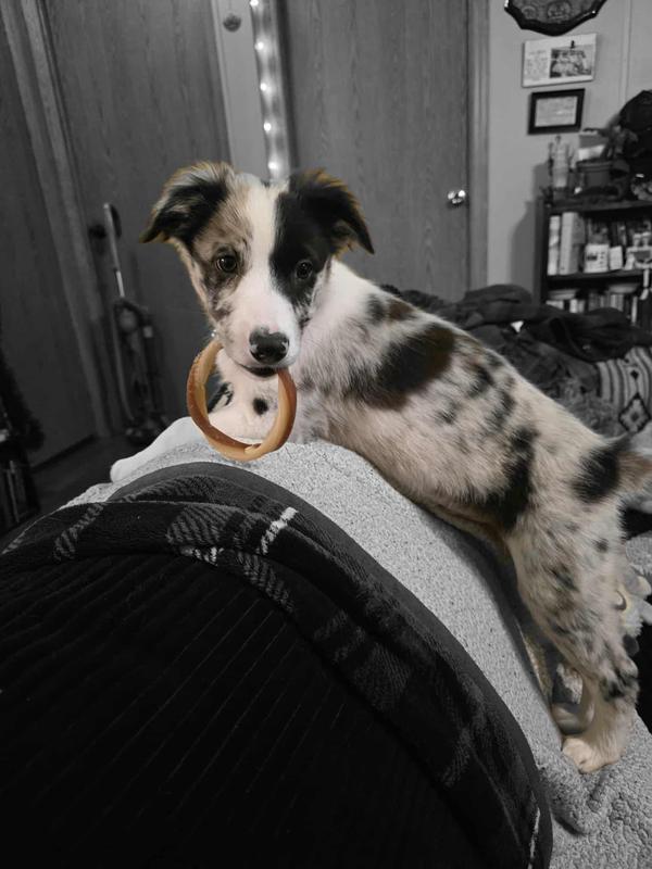 Each N-Bone Puppy Teething Ring is twisted into its unique shape by hand. The hand-shaped ring gives your puppy special grooves to chew on, helps keep teeth clean from plaque and tartar, and soothes sensitive gums. The pliable texture is not too harsh on young teeth and easy for little puppy paws to grip.