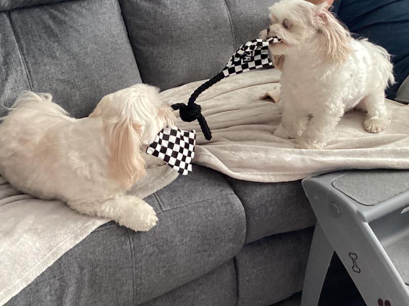 Well my three dogs love it. They have fought over it and played for hours. It is a big hit with the rope to use as a tug game and the crinkle noise the flags make.