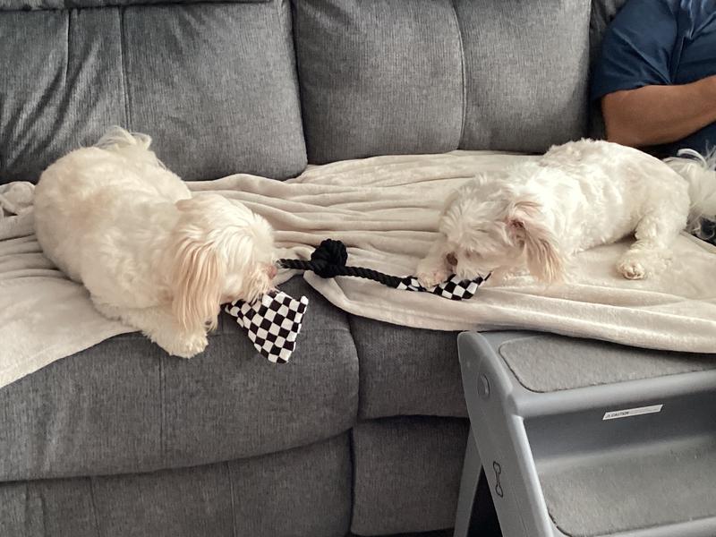Well my three dogs love it. They have fought over it and played for hours. It is a big hit with the rope to use as a tug game and the crinkle noise the flags