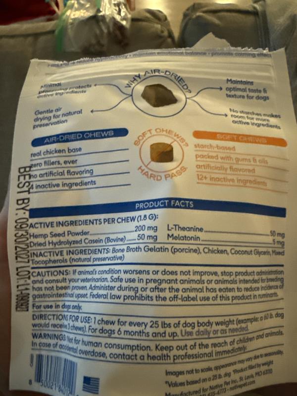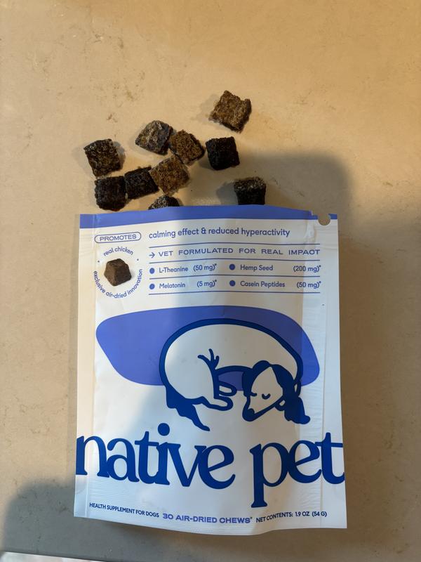Native Pet Chicken Flavored Air-Dried Chews Calming Supplement for Dogs, 30 count