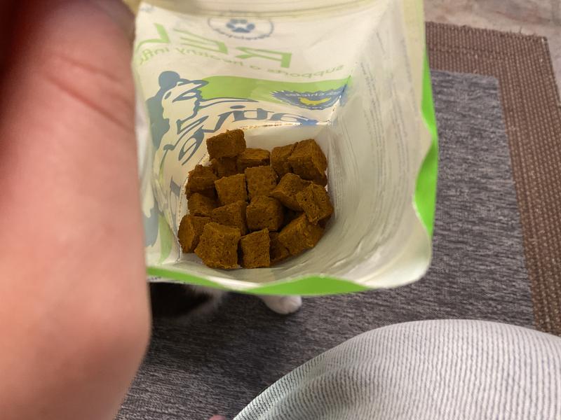 Must have gotten an “old” or stale package but these supplement treats are so hard and not crunchy. My dog, who’s used to chewing up toys that are advertised as indestructible, and will eat anything from green beans to strawberries to bison, spits these out after he tries to break them apart. Wish I knew if this was the original intent of the company, because it is definitely not an enjoyable “treat” for him. Given the almost star shaped design, I don’t want him to swallow them whole. Don’t think I’ll be purchasing these again.
