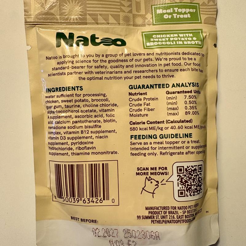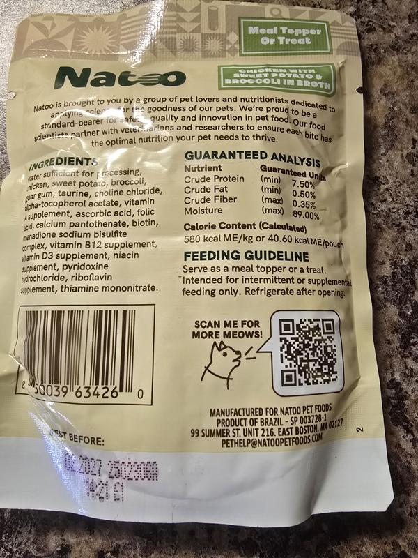 Natoo Chicken, Sweet Potato & Broccoli in Broth Limited Ingredient Cat Food Topper, 2.4-oz pouch, case of 20