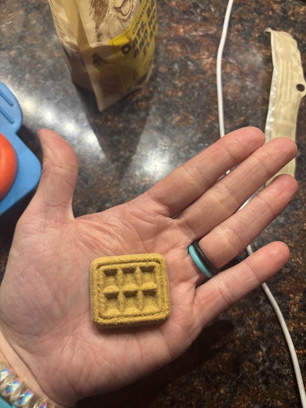These are a very sturdy, crunchy biscuit. Smell good and the boys are always happy for cookies! They look like mini waffles, but the "big bite" is much bigger than