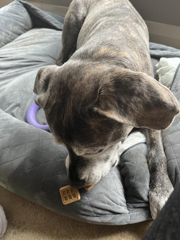 My German Shepherd loves these! He has a notoriously sensitive stomach, but these don't seem to exacerbate that. The "waffles" are great for spreadjng peanut butter in and can even hide small pills and supplements, if needed.